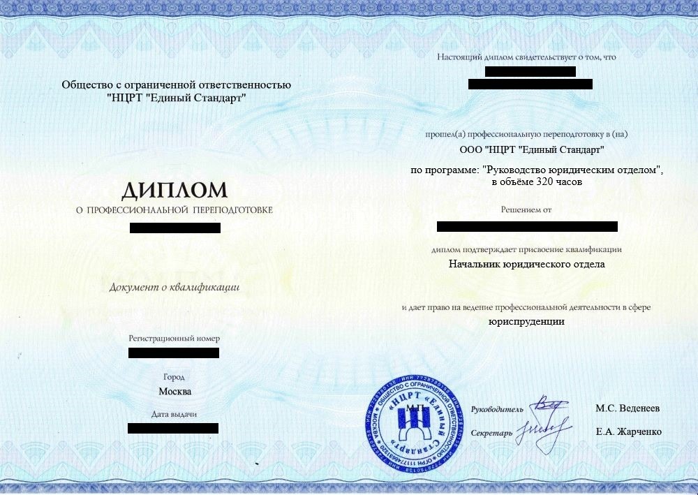 • Диплом о профессиональной переподготовке установленного образца. Срок действия: бессрочно