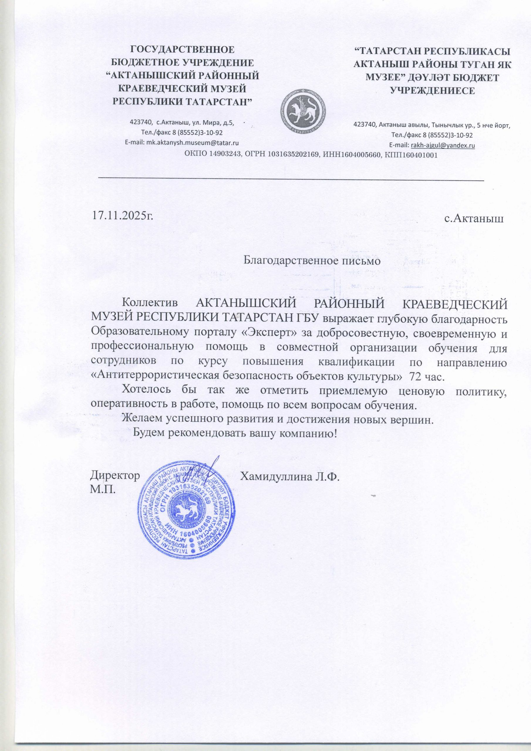 Все благодарственные письма → смотрите на этой странице