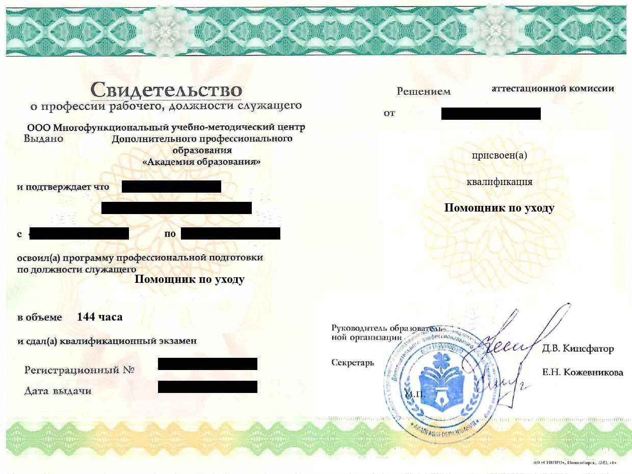 • Свидетельство о профессии рабочего, должности служащего установленного государством образца. Срок действия: бессрочно